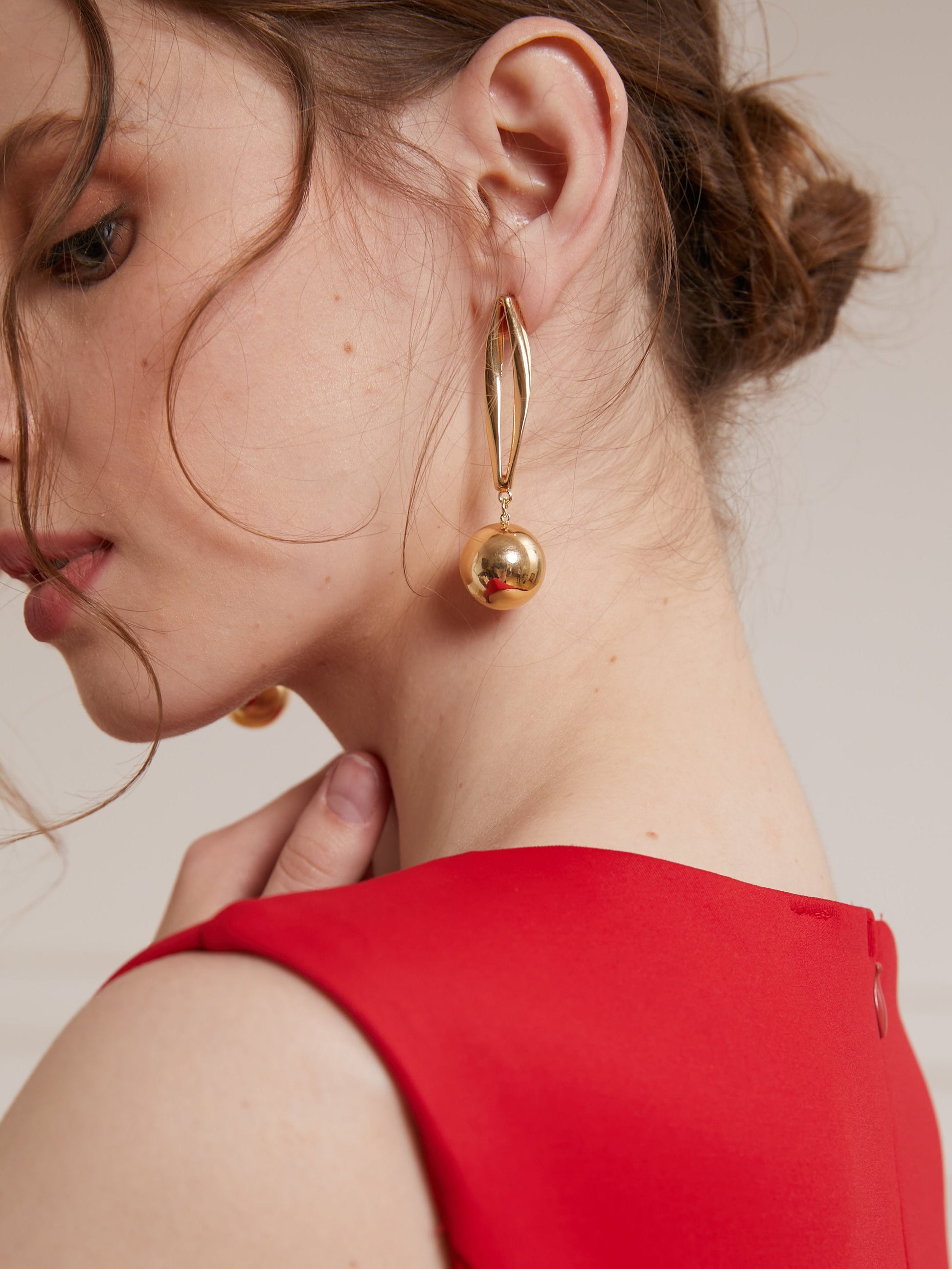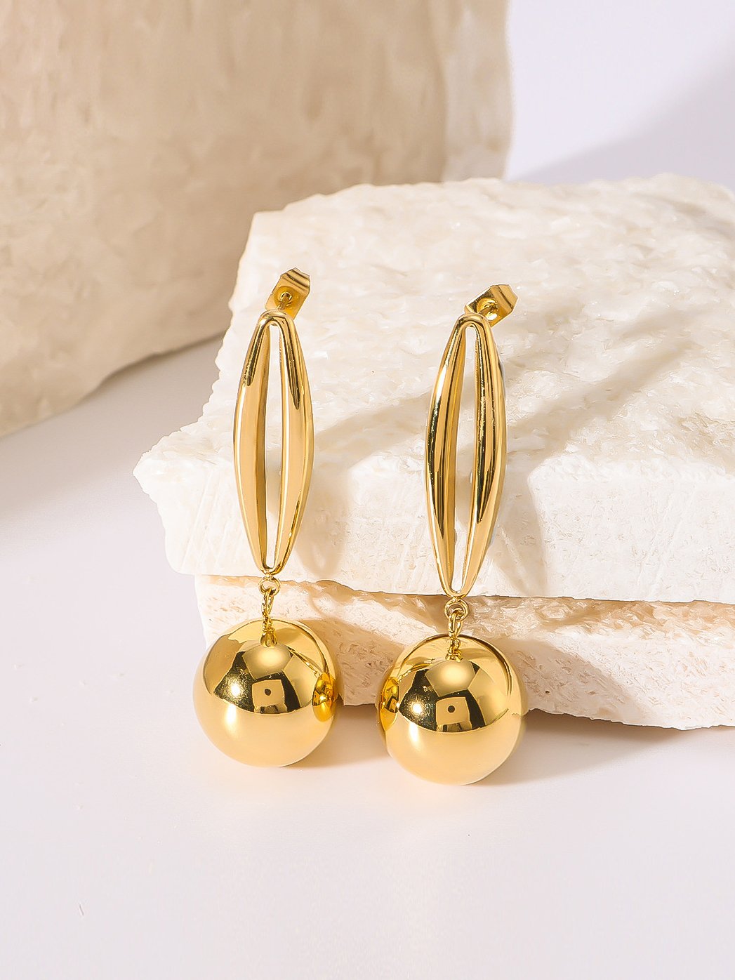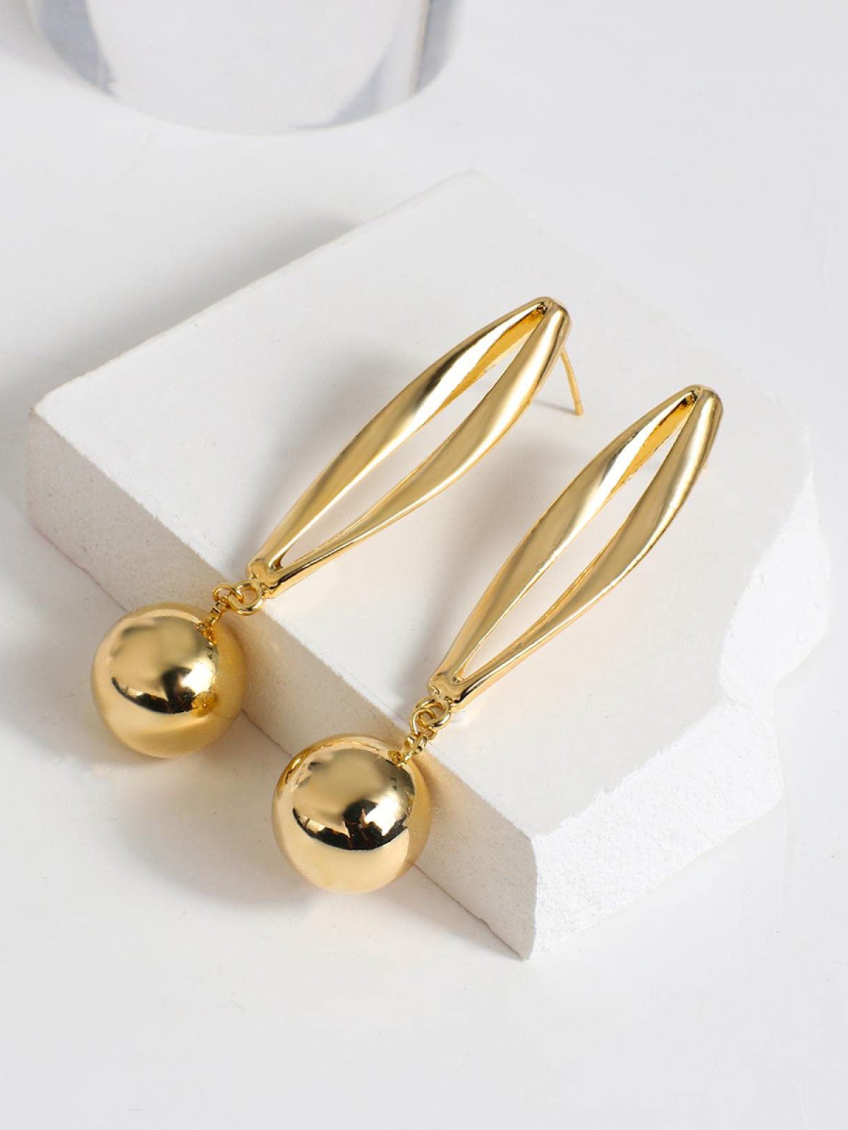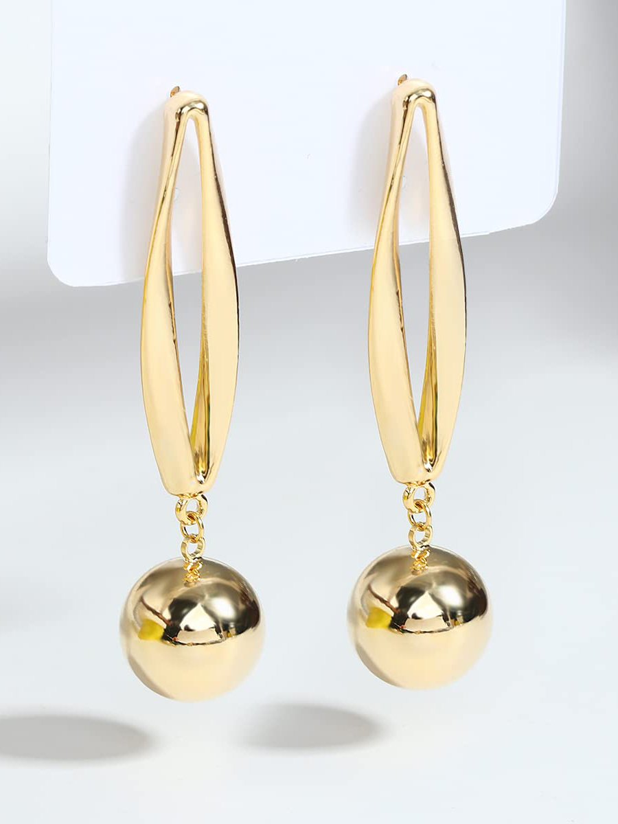 Copper Golden circle metal ball geometric simple texture earrings Jewelry