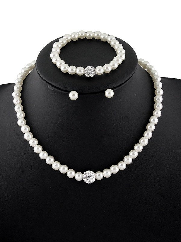 Creative Jewelry Imitation Pearl Necklace Bracelet Earrings Set Three Pieces
