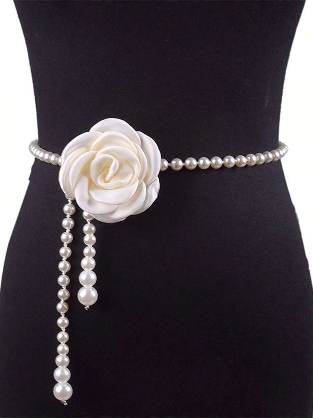 Elegant Camellia Flower Waist Chain Faux Pearls Necklace