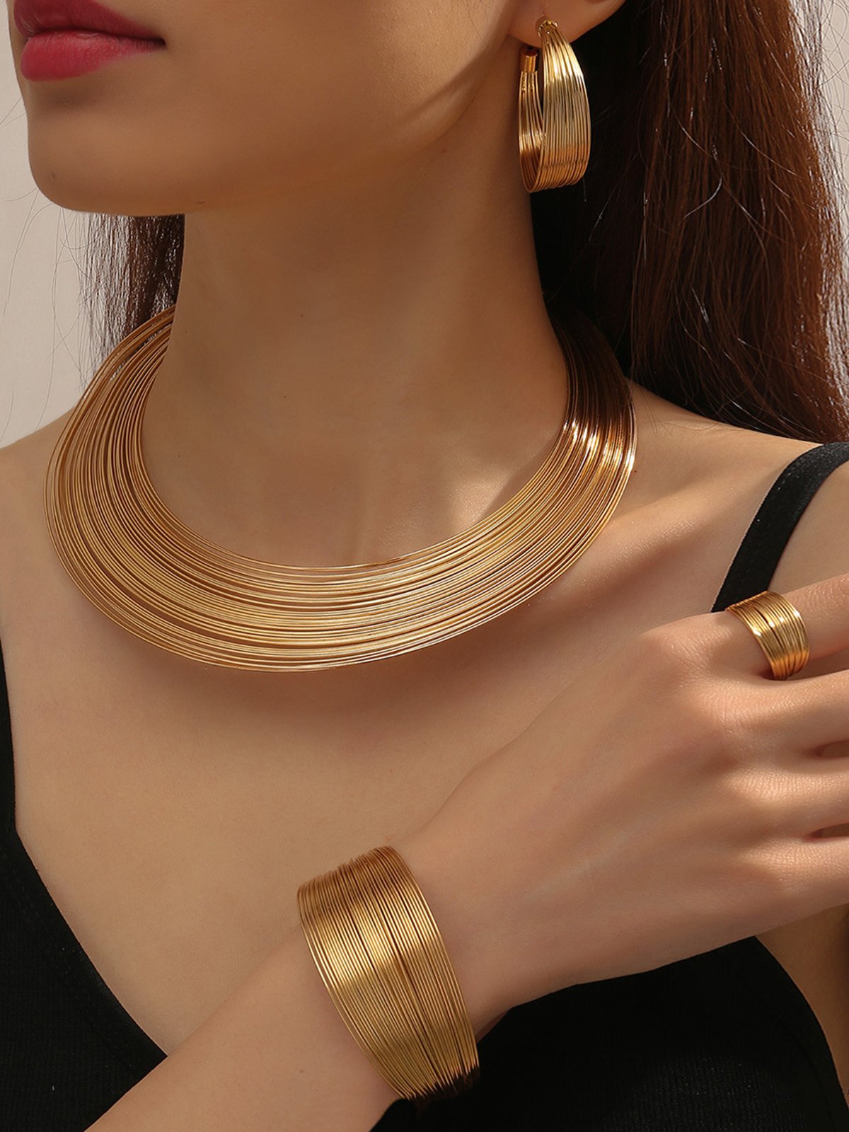 Exaggerated Golden Personality Multi-Layer Jewelry Set